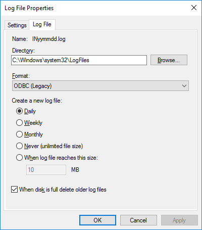 - Rotation interval -- daily may result in very large files if you have a lot of traffic