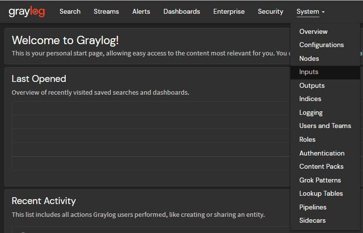 - Navigate to System > Inputs