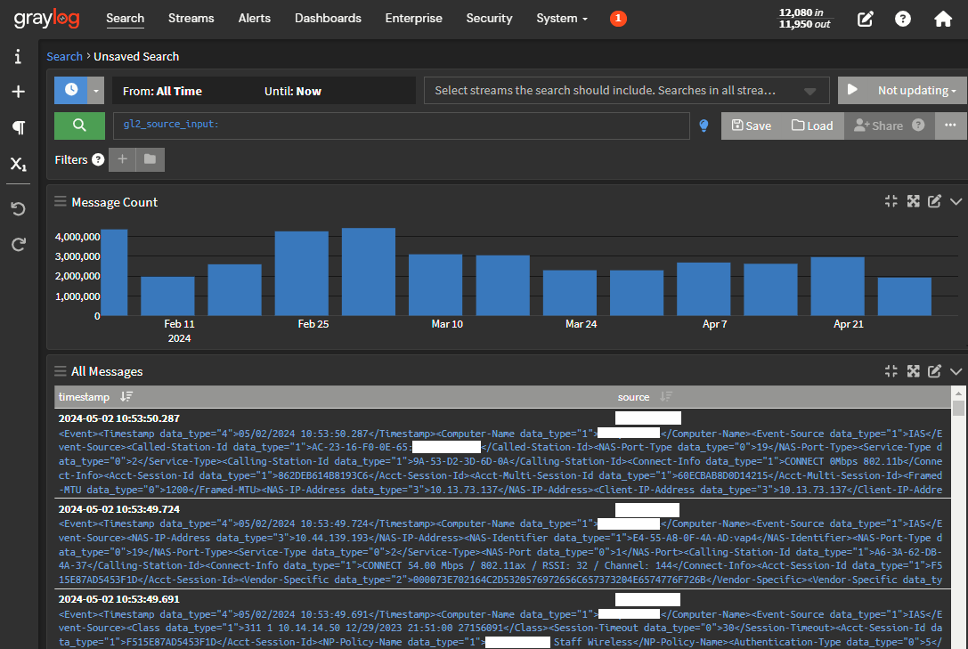 We should be receiving log messages now. Let's check: