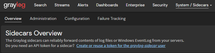 - Click on Create or reuse a token for the graylog-sidecar user