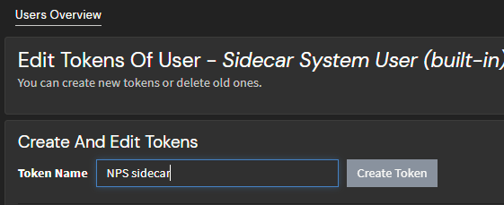 Create Sidecar API Token