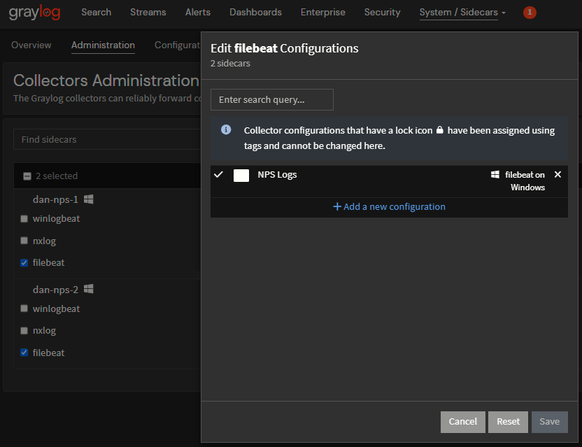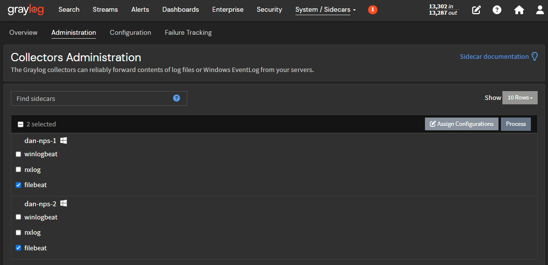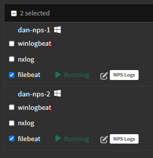 - Under each NPS server sidecar, check the box next to "filebeat"