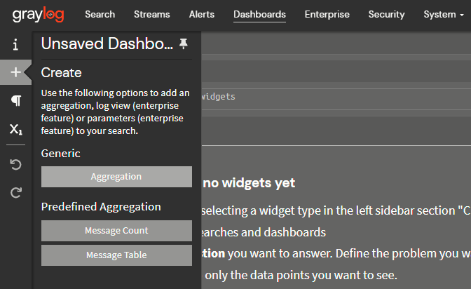 Now that our data is parsed into useful fields, we can aggregate and summarize it. A dashboard is a set of widgets that show messages, counts, or aggregations.