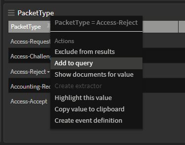 Dashboards also provide an easy way to "drill down". By clicking on a value in an aggregation, we can exclude or include messages matching that field value.